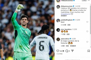 此役是库尔图瓦为皇马出战的第300场比赛,他在社交媒体上写道:“以胜利和零封庆祝300场里程碑!感谢所有皇马球迷,未来还有更多场比赛!”
