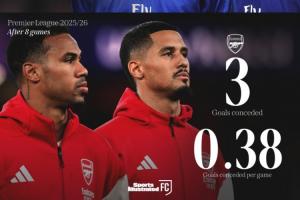 体育资讯10月24日讯 阿森纳本赛季的防守堪称铜墙铁壁,8轮英超仅丢3球,3场欧冠和1场联赛杯更是1球未丢,总计12场比赛丢掉3球。