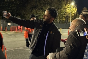 笑容温暖纯真阿莫林在比赛结束后2小时仍在为球迷合影签名