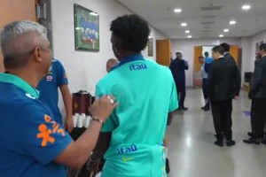 辽宁铁人主场对阵南通支云,李金羽与队员刘伟国出席赛前发布会