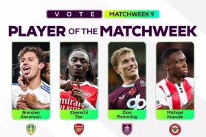 英超官方评第9轮最佳球员候选:埃泽、姆伯莫领衔,范德芬在列